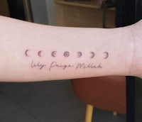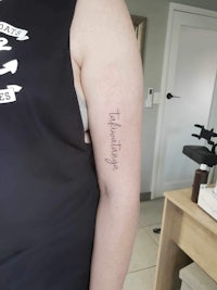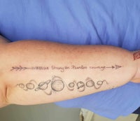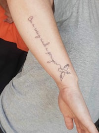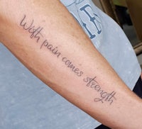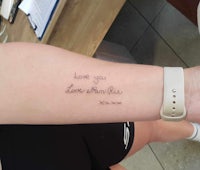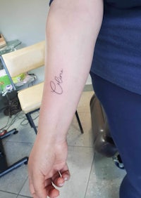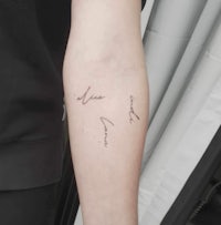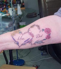 Tattooing your loved one's handwriting from cards, signatures, letters or tattooing their names and dates can illustrate your bond and create a special memory that offers connection and comfort.